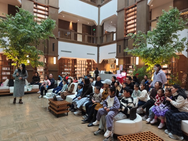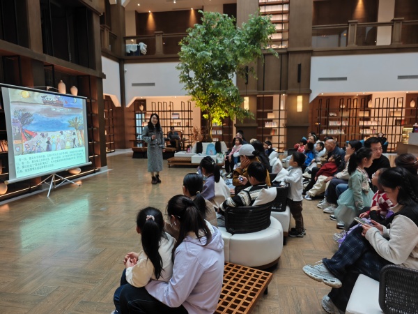 在隋老师层层递进的引导下,孩子们踊跃举手,争相表达自己对“生命意义”的理解,稚嫩而真诚的发言中闪烁着对自我与爱的初醒认知,现场氛围温暖而活跃。隋老师以深入浅出的方式,将深刻的哲学命题转化为富有童趣的猜想游戏,引导亲子家庭在共读中完成从“为他人而活”到“为自我而活”的精神觉醒。整场活动不仅是一次绘本讲述,更是一场基于文本、超越文本的生命对话,在思想碰撞中完成对“何为真正活着”的集体叩问。