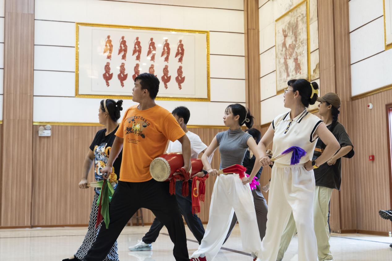 海阳市育才小学将非遗深度融入美育血脉,开设海阳大秧歌、戚风锣鼓、掐丝画等特色课程,让孩子在动手间传承文化,并排演《雷锋是我,我是雷锋》等情景剧实现“以艺育德”。与此同时,作为“活态文化源头”的海阳市京剧团海阳大秧歌,不仅持续为校园输送“原汁原味”的非遗技艺,更不断创新秧歌剧逐步走向世界,其国内外数百场展演极大拓展了美育的时空边界,形成了“课堂打基础、剧团搭高台”的校团共育新模式,让古老秧歌真正成为滋养青少年的美育源泉。“爸妈很支持,虽然遇到困难,但在哥哥姐姐帮助下我坚持下来了。”六岁的纪栋元笑着说道,从磕磕绊绊到流畅起舞,他的转变,正是海阳大秧歌在孩子们心中生根发芽的生动注脚。