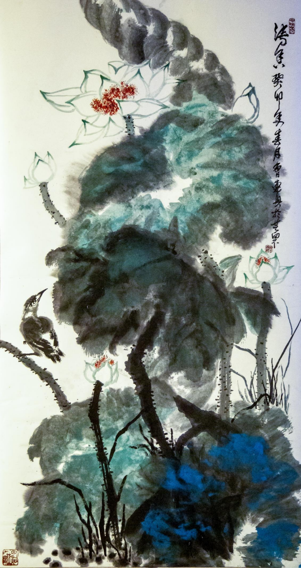 曹连兴大师的艺术之路,始终与对传统国画的敬畏和对生活的热爱紧密相连。他性格粗犷豪放,自幼浸润于笔墨丹青,遍览名山大川,陶然众趣,师传统,集精华,随自然,求精神,修习百家之长,尤擅做巨幅大作,深得国内外博物馆和收藏家青睐。早在二十世纪八十年代,中央电视台“神州风采”“华夏掠影”等栏目,以及《人民日报》《光明日报》等报刊均做过专题报道,烟台人民广播电台等媒体做过长篇纪实文学联播。观其作画,水墨淋漓,大气磅礴,没有丝毫的做作且从来都是胸有成竹,不打草稿。曹连兴先生的画以气势雄浩著称,但仔细品过,則物化境迁,正盈盈一水,烟波送爽;又月荷初照,花影扶簾。细节之处,并不欠功夫。四十多年前许麟庐先生在看过曹连兴先生的画展后,感慨言之:“谁说中国画没出路,有曹连兴这样的年轻人就有希望。”言之凿凿,尚犹在耳,倘这些名家大师看到曹连兴先生今天的艺术成就,也定是赞叹不已。