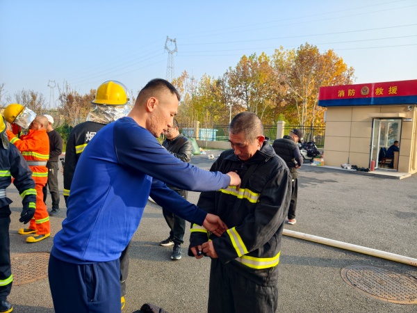 培训过程中,消防指战员结合社会单位日常消防安全管理实际,重点围绕灭火器使用、消防水带连接(出水)、灭火防护服快速穿戴等关键技能展开教学。从灭火器的“提、拔、握、压”四字诀,到水带如何快速展开、精准连接、有效出水,每一个步骤都详细讲解、反复示范,同时对战斗服的穿着顺序、标准和要求进行了明确示范。随后的实操演练环节,参训人员在消防指战员的专业指导下,分组轮流上场,亲身体验,在实操中深化了对理论知识的理解,掌握了技能要领,真正实现了消防安全技能从“知道”到“会用”的深度转变。
