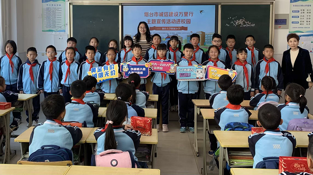 胶东在线11月21日讯(记者 刘文琼)“言必信,行必果”,诚信是中华民族的传统美德,更是少年儿童成长路上的重要基石。11月21日上午,烟台大学附属小学教室内暖意融融、欢声阵阵,由烟台市发展和改革委员会主办,胶东在线网站、信用烟台网站、烟台市信用协会承办的“烟台有信 诚传未来”诚信建设万里行主题宣传进校园活动如期举行。学校师生代表通过“诚信小课堂”分享、集体宣誓、互动闯关、打卡留痕等环节,为孩子们的成长之路播下守信的种子,让诚信理念扎根童心。