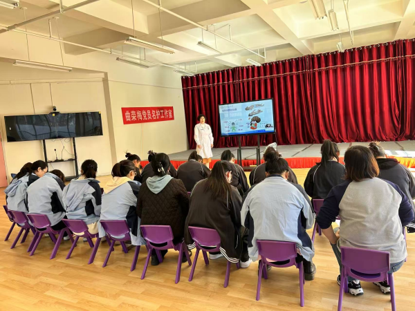 随后,曲荣梅护士长为全体教职工进行校园传染病防治知识和急救技能培训,从校园传染病的概述与危害、传播途径与特点、监测与报告制度、应急处理方案、预防措施等方面提升师生健康意识和能力;重点讲解高热惊厥的急救处理:识别高热惊厥、做出快速处理,并纠正过去不恰当的急救错误行为,教会大家合谷穴位定位方法;急救技能方面主要讲解了海姆立克急救原理、快速识别气管内异物、操作注意事项,并现场组织教职工进行实操。