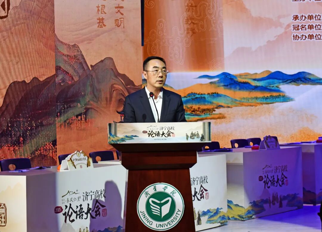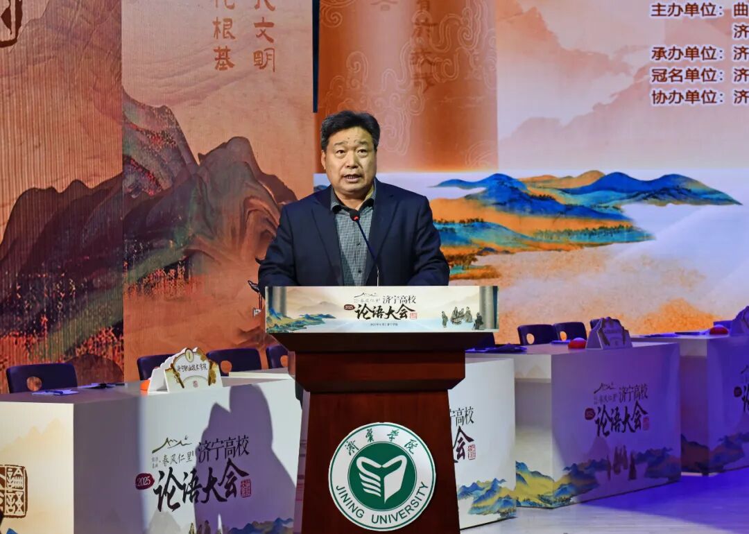 济宁学院党委副书记、校长王清明在致辞中表示,作为地处孔子故里的高等院校,济宁学院始终坚持以“弘扬儒家文化、培育时代新人”为己任。近年来,学校依托地域优势和文化资源,持续推进中华优秀传统文化“两创”实践,打造了一系列具有影响力的学术平台和文化品牌。《论语大会》这档发轫于济宁学院的大型益智文化赛事历经多年突破创新,已积淀成追求卓越、争创一流的鲜明特质。赛事自创办以来,以其深厚的文化底蕴、严谨的赛制设计和广泛的参与度,已成为全省乃至全国高校中颇具影响力的文化盛事。