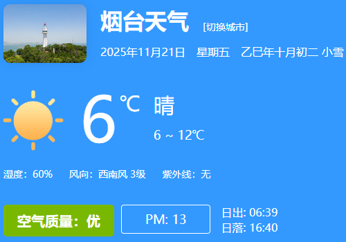 南部海域(海阳市至莱阳市)将有0.6米的轻浪,风浪向西北;平均水温:11.9℃;