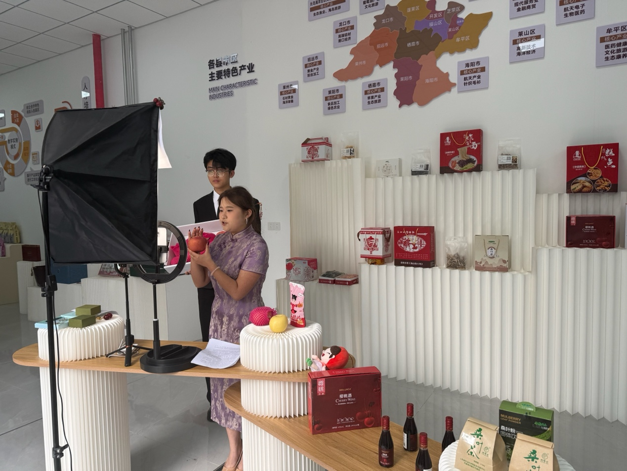 在非遗手造产业学院的创意集市工坊,学生作品琳琅满目。这里不仅是展示平台,更是产教融合的实训基地。“我们对接烟台市文旅局,设计了‘全民美育LOGO’‘书香烟台LOGO’方案37套;推进‘画美烟台’文旅项目,绘制烟台风貌、美食、民俗等插画59套;为芝罘区农贸市场完成标志、门头设计和整体形象打造;为‘海中宝’设计方案112套;为海阳茶、网纹瓜、苹果箱完成包装及形象设计25套……”说起这些成果,学院负责人如数家珍。