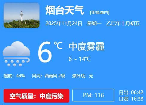 烟台市海洋环境监测预报中心发布24小时海洋预报(11月24日0时-11月25日0时)