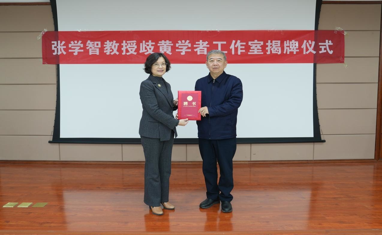胶东在线11月26日讯(通讯员 李成修 崔方荣)为进一步推动中西医学科高质量发展,提升中医药服务能力与科研创新水平,11月21日上午,“张学智岐黄学者工作室”在烟台毓璜顶医院揭牌成立。北京大学中西医结合研究所所长、北京市中西医结合临床研究所常务副所长、北京大学中西医结合学系主任、中华中医药学会综合医院工作委员会主任委员张学智,烟台毓璜顶医院副院长孙萍出席揭牌仪式。烟台毓璜顶医院医务科、门诊部、科研科、公共卫生科、中医中西医结合科、老年医学科、疼痛科、全科医学科、血管外科、风湿科等科室负责人及医护人员共同见证了这一重要时刻。