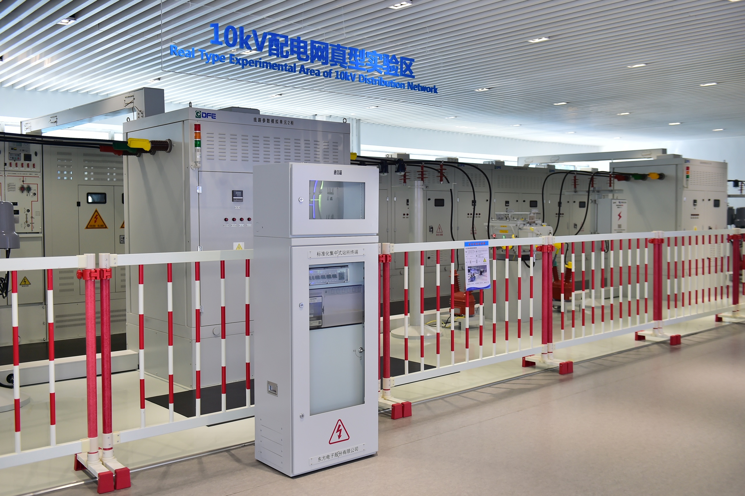 东方电子10kV配电网真型实验区,以10kV真实电压与自产自研全套设备实现全真模拟,为新产品挂网验证及现场真实场景复现提供核心支撑。受访者供图