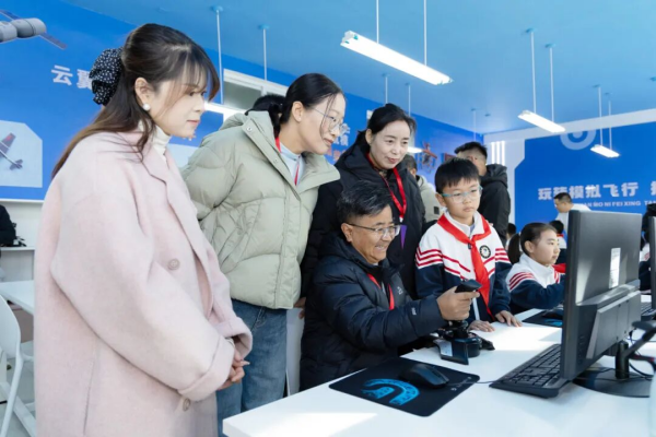 六楼科技实践馆内,航天、绒绣、中草药等社团各具特色;三楼连廊里,机械臂、3D打印、编程等科创空间活力满满,小主持人社团演绎《我的航天梦》热忱十足;体育馆内无人机表演惊艳,科技体验区互动热烈,航空航天成果展尽显育人成效;二楼长廊串联多元文化板块,特色活动生动诠释科学教育魅力。