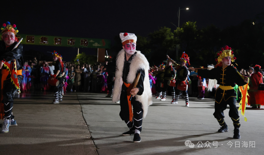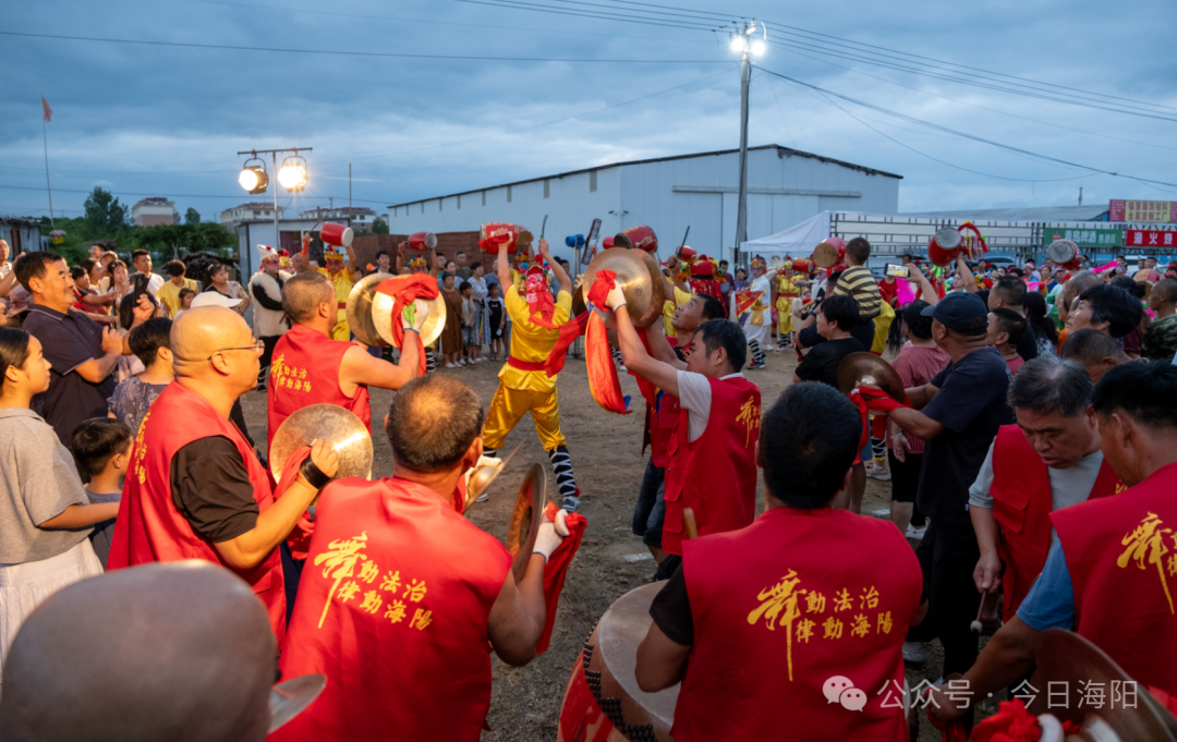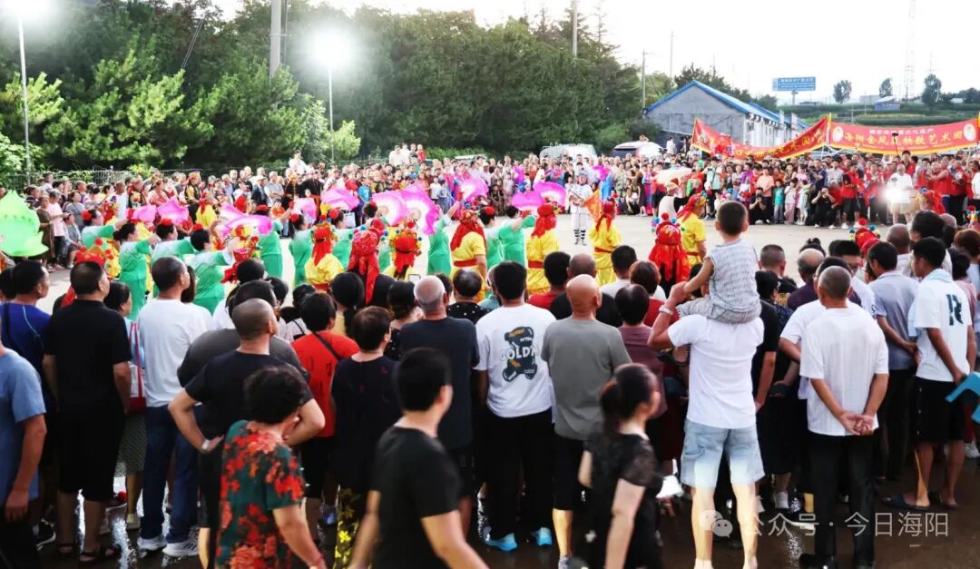 当晚,金凤凰秧歌队、里口村秧歌队和龙腾秧歌队也来到现场,一起学习交流海阳大秧歌。夜幕初垂,振奋人心的锣鼓声骤然响起,活动现场高潮迭起,欢声雷动,市民游客近距离感受到了海阳大秧歌的独特魅力。