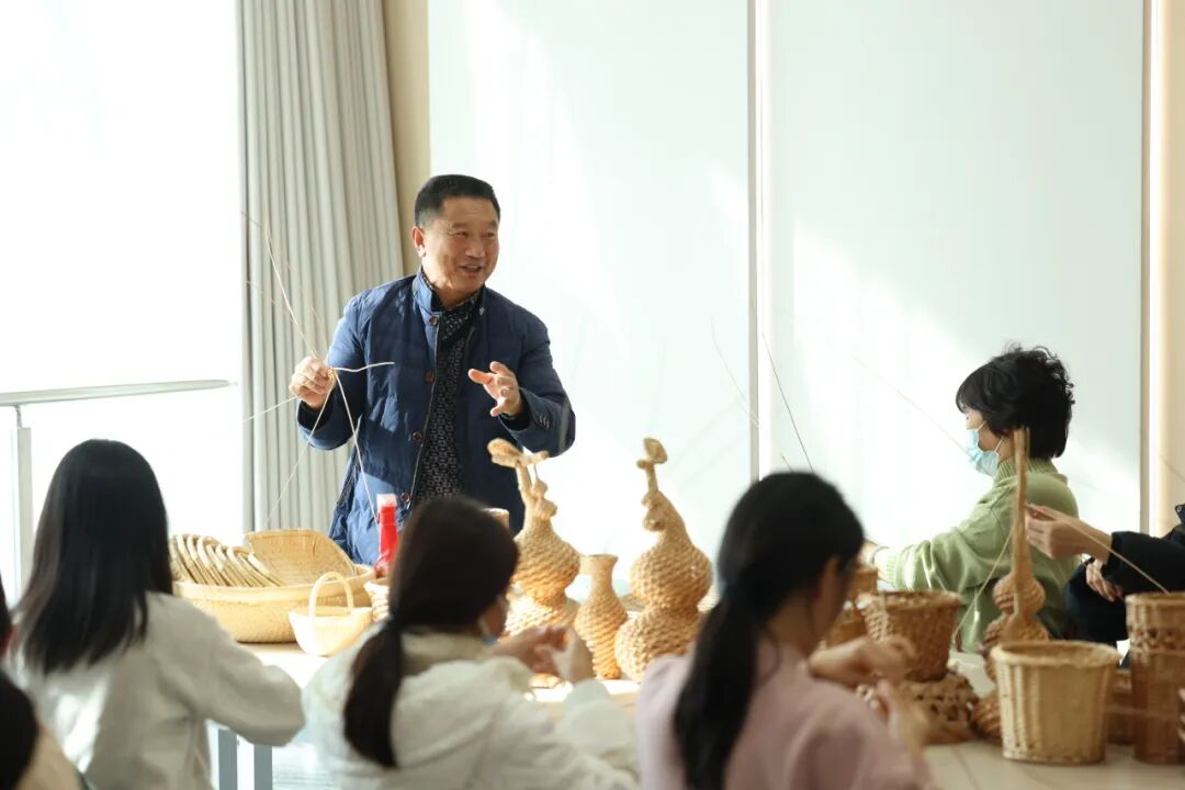 “指尖传艺”非遗传承代际共融工坊环节,邀烟台市柳编非遗项目代表性传承人于吉治与非物质文化遗产葫芦彩绘牟平区级代表性传承人曲淑轩分享学艺故事并现场教学。在两位传承人的悉心指导下,老人、大学生及居民结对合作,穿编、缠绕、勾勒、上色,一件件小巧精致的迷你柳编筐、色彩斑斓的彩绘葫芦逐渐成型。每件作品中既承载着传统技艺的精髓,更凝聚着代际携手的温情,让非遗在互动中实现活态传承。