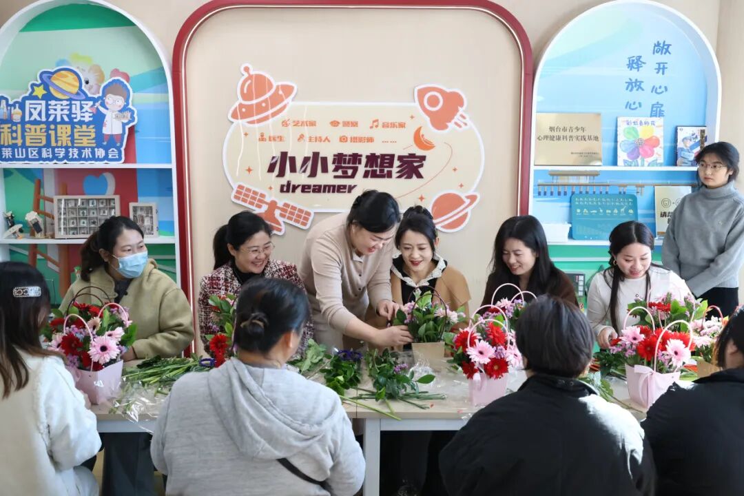 “时光献礼”插花体验课上,专业插花老师以“时光与传承”为主题,指导老人选材、修剪、搭配。老年人与大学生结对合作,在指尖的翻飞中感受传统美学的魅力。一束束鲜花承载着晚辈对长辈的敬意,也成为连接岁月与当下的美好纽带,让温暖与祝福在花香中传递。