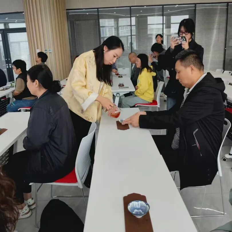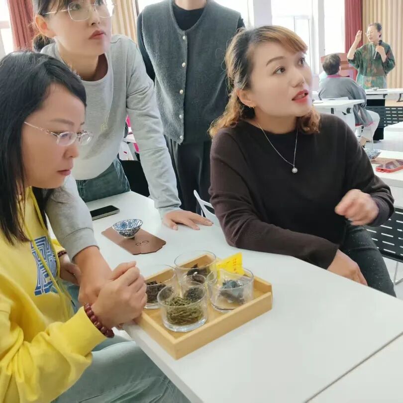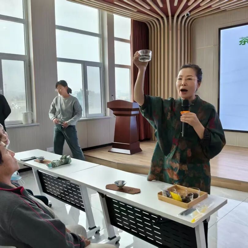 一叶见方寸,一茶现万千。居民们开始仔细观察汤色,而后举杯轻啜,在茶香与茶汤的交融中,切身感受“一泡知茶性,一品悟茶韵”的乐趣,课堂里不时响起对茶汤滋味的赞叹与交流。
