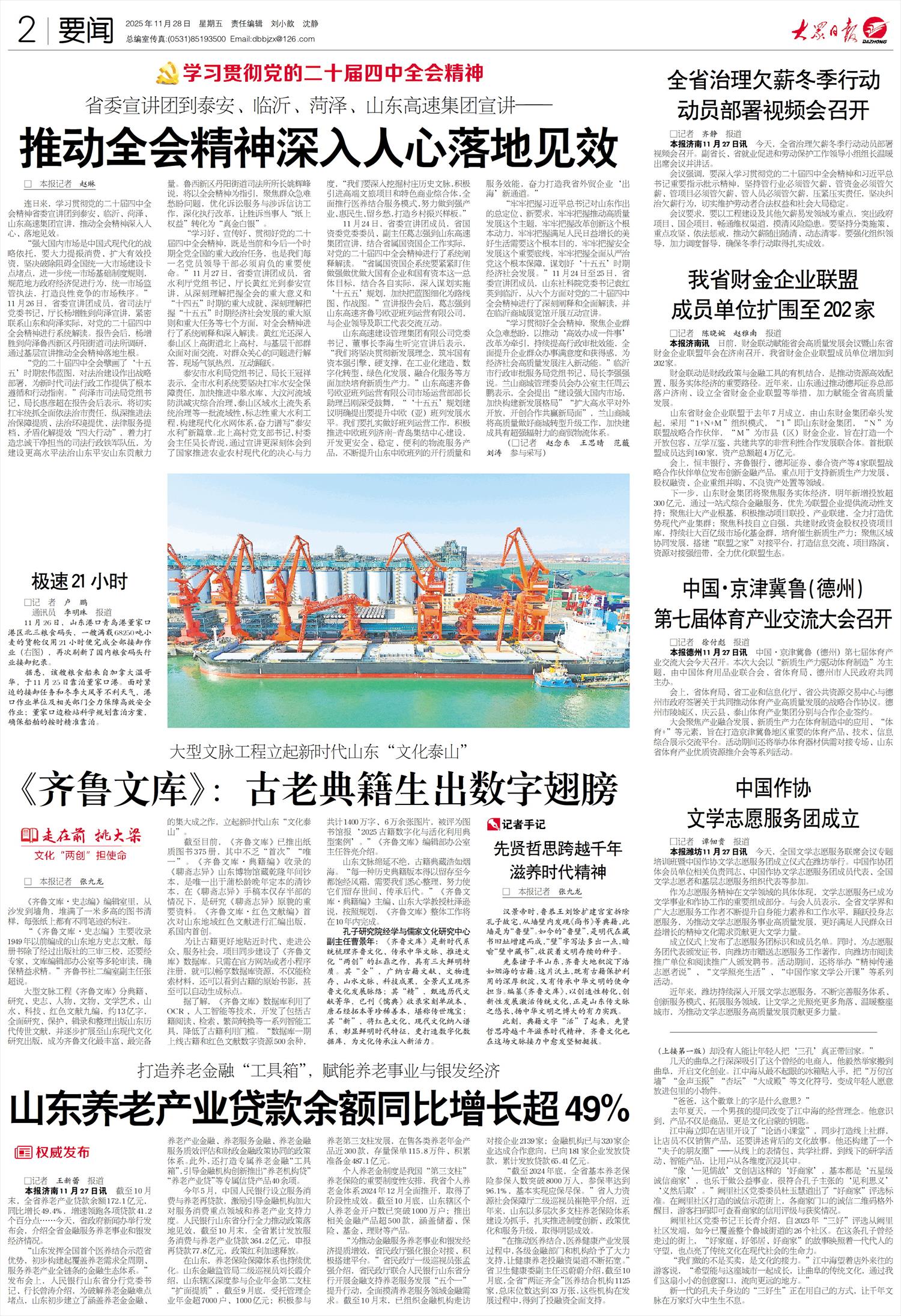 连日来,学习贯彻党的二十届四中全会精神省委宣讲团到泰安、临沂、菏泽、山东高速集团宣讲,推动全会精神深入人心、落地见效。