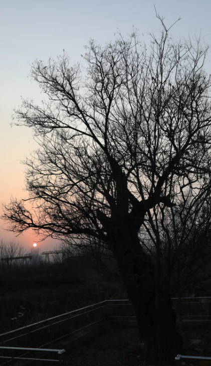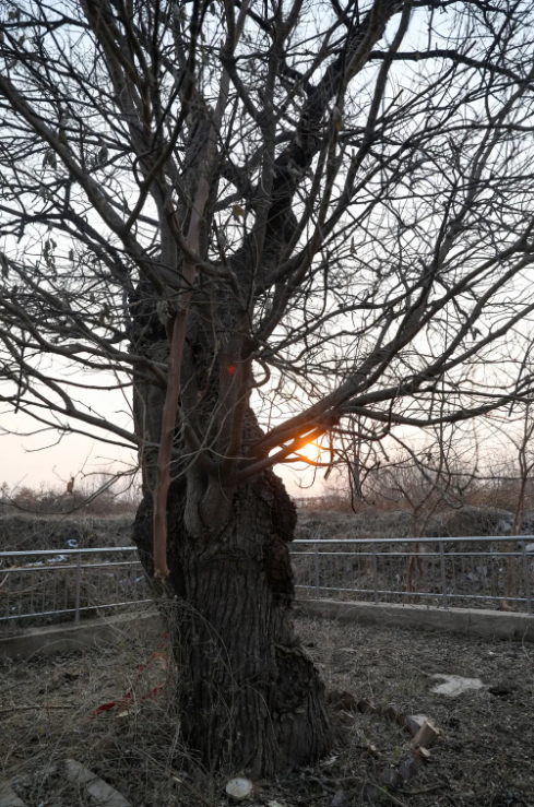 夕阳西下,光从老槐树的枝杈间漏下来。这棵六百岁的树,身上都是岁月刻下的痕——挨过风吹雨打,挺过拆迁的尘土漫天,但它还站着。