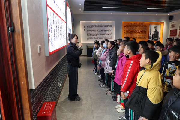 “大家看这把三八大盖儿!” 七甲基地任常伦革命纪念馆里,研学导师刘亚杰指向展柜,“这是任常伦的‘战友’,1940 年他用大砍刀缴获它,此后跟着他打了120 多场战役。” 两个月多来,这样的讲解刘亚杰已做了百八十次,每一次都饱含深情。