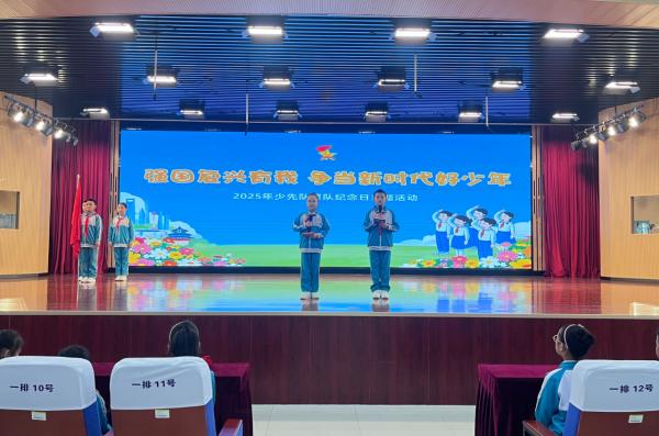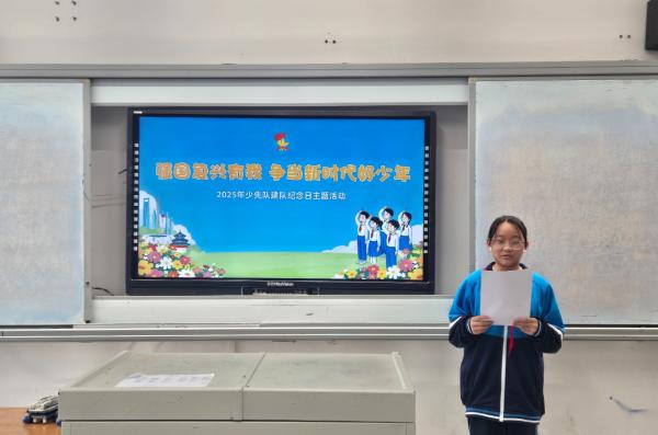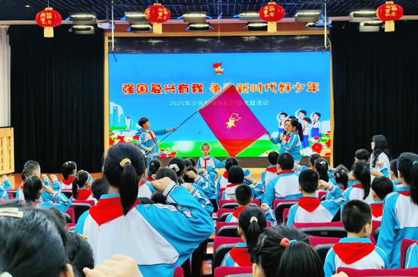 为落实“强国复兴有我 争当新时代好少年”主题要求,学校结合党和国家重大纪念活动与少先队建设,开展系列实践。组织少先队员及辅导员关注抗战胜利 80 周年纪念大会等活动,通过看直播、学新闻领会精神,还开主题队会学习。10月11日,为二年级63名同学举行入队仪式,壮大少先队队伍。此外,全体队员参与“红领巾爱阅读” 红色书籍阅读,以多种形式展风貌;同时开展体育锻炼,队员们以强健体魄与坚毅意志诠释“强国有我”,彰显朝气。