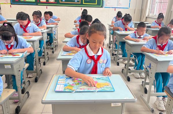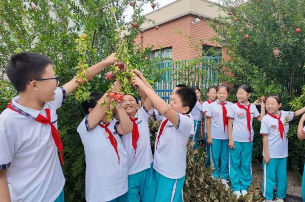 登州实验小学组织多彩活动,厚植队员爱国情怀。活动中,队员们亲手采摘校园石榴,分享收获喜悦;拼贴中国地图,强化国家版图意识;齐跳“歌唱祖国”手势舞,传递赤子之心;运动场上,大家奋勇争先,展现少年活力。各中队还召开主题班会,重温队史;二年级入队仪式上,队员们在队旗下庄严宣誓,用实际行动践行“请党放心,强国有我”的铮铮誓言。