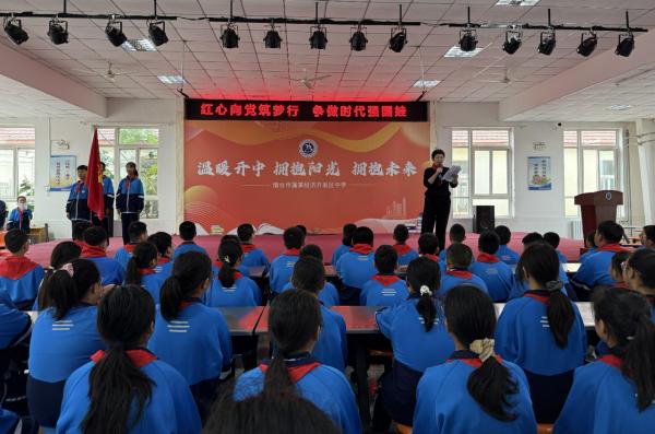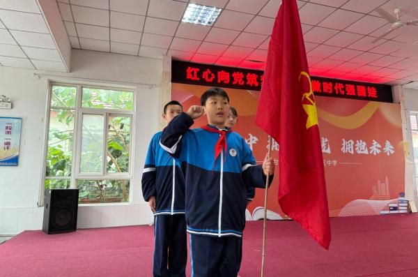 蓬莱经济开发区中学举行2025级少先队员入队仪式。活动在庄严的出旗、奏唱队歌中拉开帷幕。学校宣读组建决定和新队员名单,老队员为新队员佩戴红领巾。全体队员面向队旗庄严宣誓。学校宣布聘请中队辅导员并颁发聘书。校长寄语,勉励队员志存高远、勤学善思、强健体魄、锤炼品格,努力成长为新时代好少年。活动在集体呼号、退旗中圆满结束。