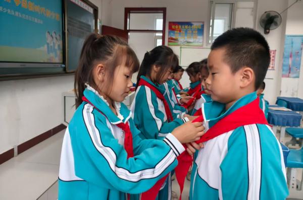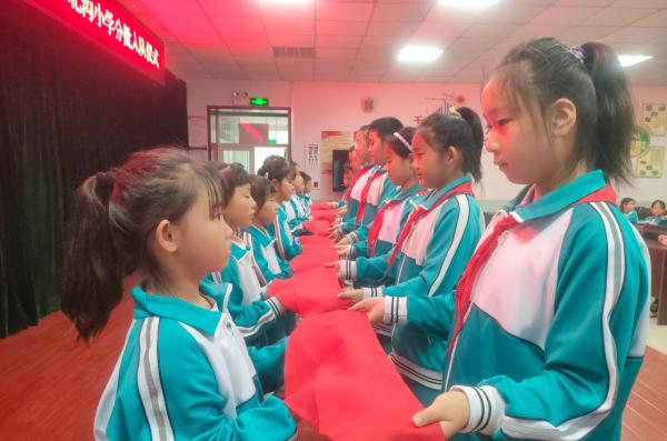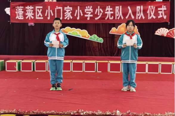 小门家小学举行“强国复兴有我 争当新时代好少年”少先队建队日活动暨新队员入队仪式。伴随着雄壮的《中国少年先锋队队歌》,仪式拉开帷幕。老队员为新队员佩戴红领巾,鲜艳的红领巾在胸前飘扬,新队员们高举右手,庄严宣誓,立下“为共产主义事业而奋斗”的铮铮誓言。同时各班召开主题队会,增强队员的集体荣誉感。