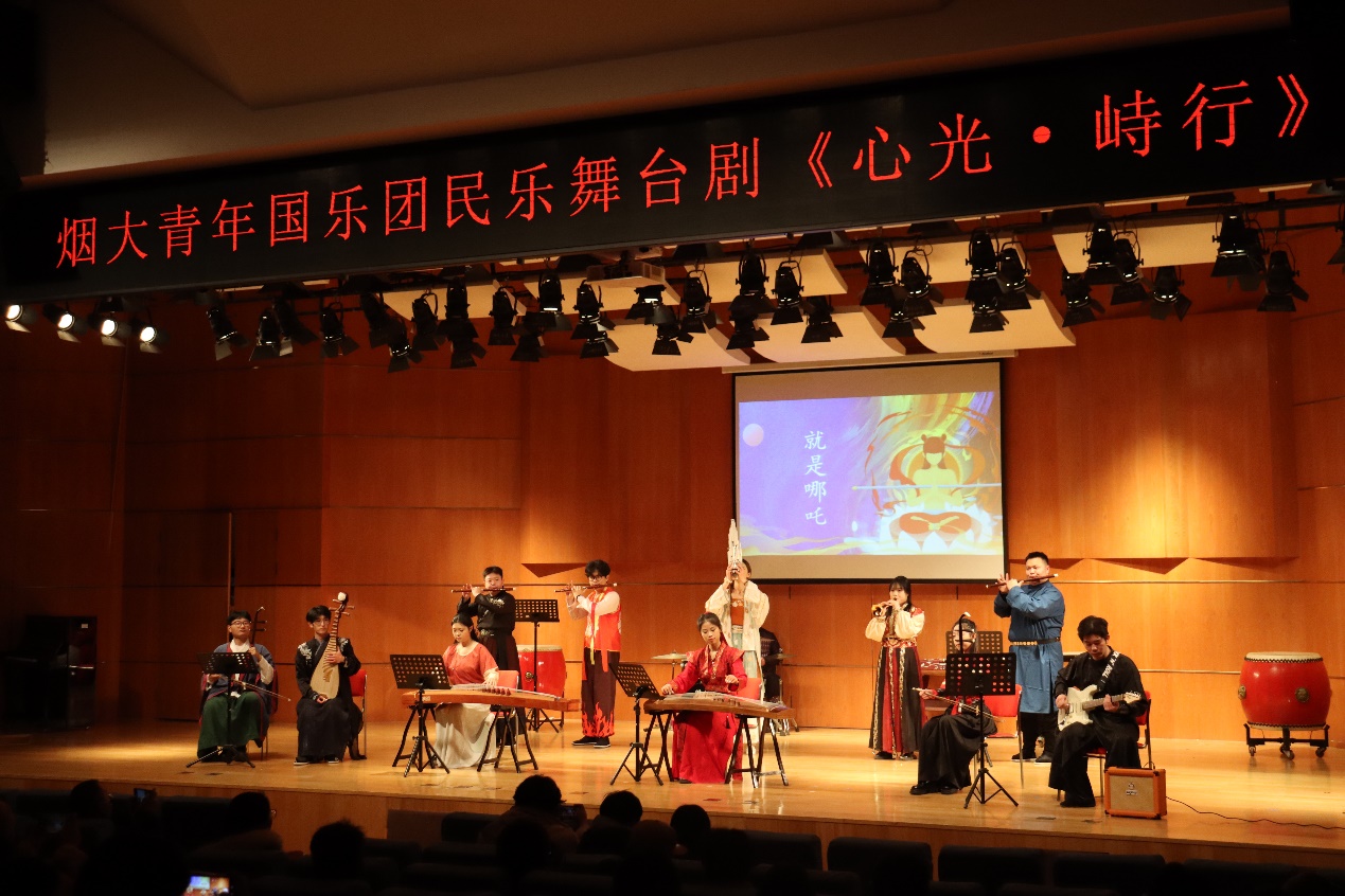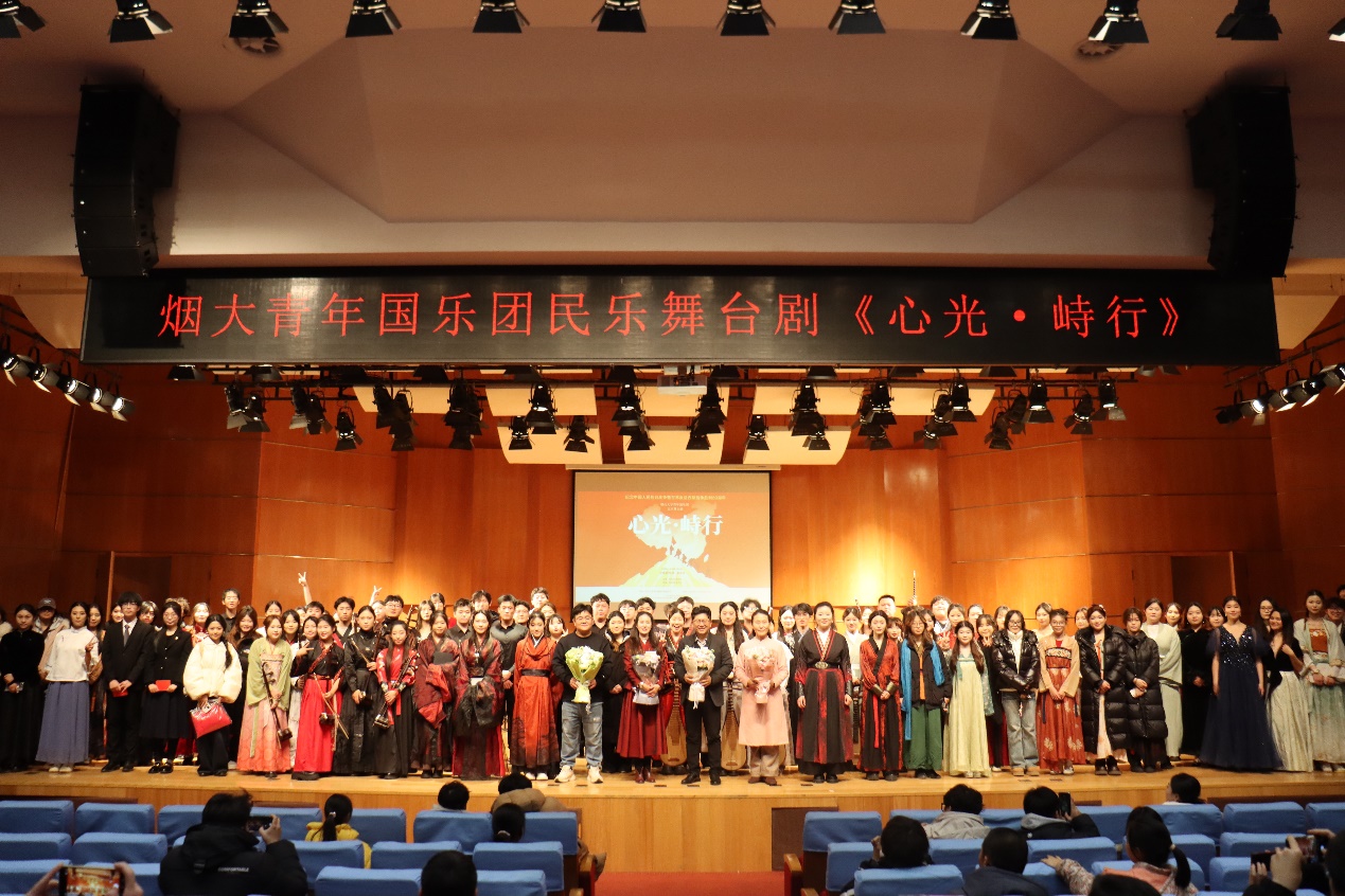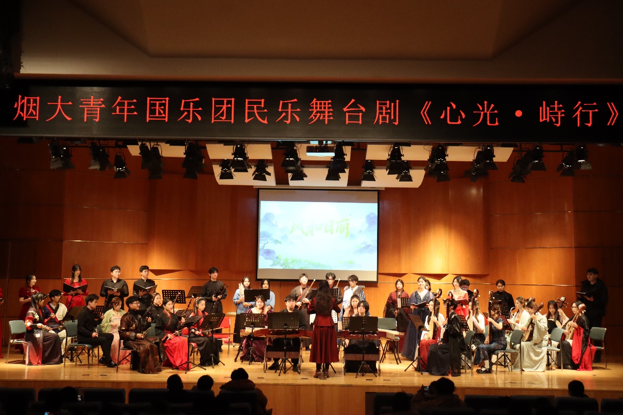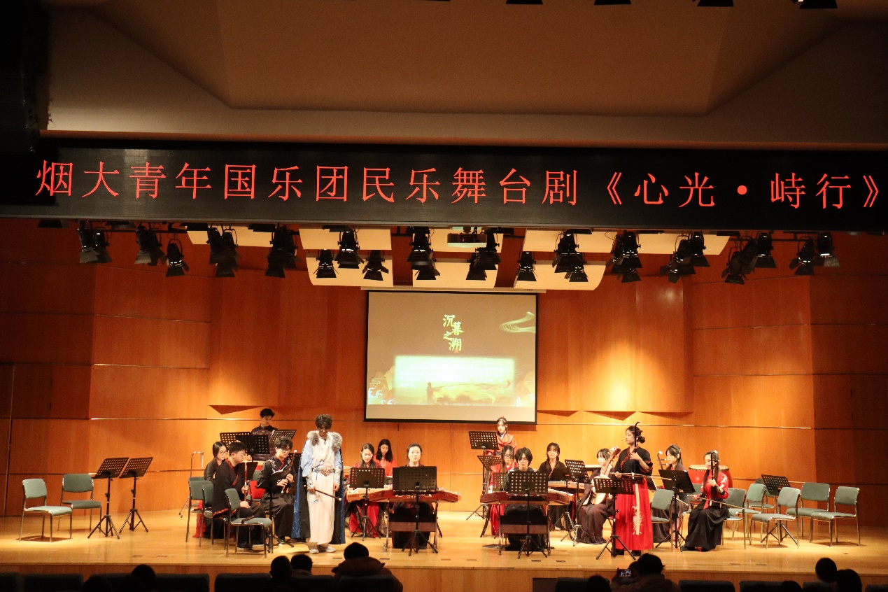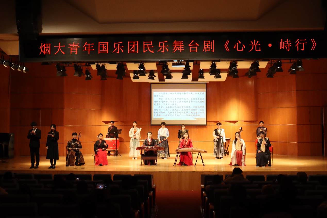 为纪念中国人民抗日战争暨世界反法西斯战争胜利80周年,12月18日,烟大青年国乐团第五部舞台剧《心光·峙行》在烟台大学音乐舞蹈学院韶乐厅隆重上演。本剧由姚金佳老师担任总编剧/导演,是山东省教学研究面上项目《中华美育视域下民乐排练课程“舞台剧化”的理论与实践》的阶段成果,以“源启华章”为序,分“孤炬问道”“寰宇觉醒”“和光曜元”三大篇章,通过剧情演绎,以国乐之声重温历史记忆,照亮和平之路。
