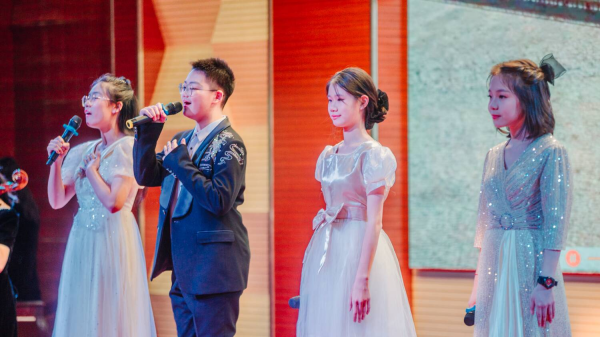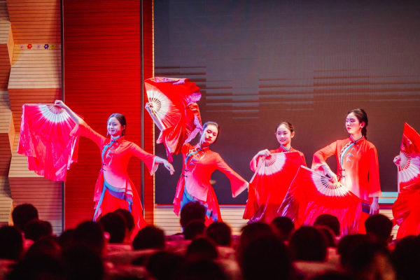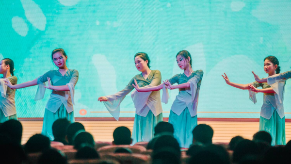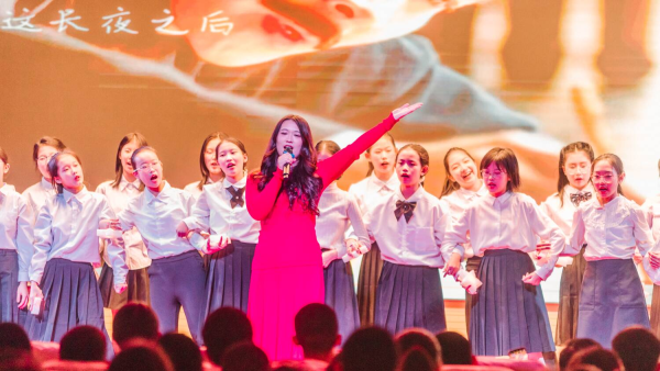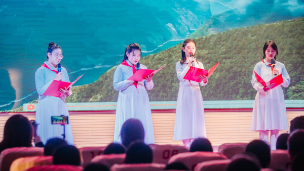历史的车轮驶入近代,古典舞《九儿》以凄美而坚韧的舞姿,诉说了抗战时期中华女子的顽强不屈与壮烈牺牲,令人动容。随后,深情的朗诵《百年交响》与激昂的歌曲《我爱你中国》相继登场,它们共同讴歌了祖国百年来的峥嵘岁月与辉煌成就,将现场师生的爱国热情推向高潮。