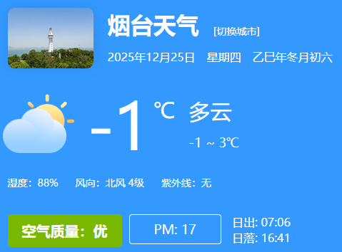常规预报: 烟台市海洋环境监测预报中心发布24小时海洋预报(12月25日0时-12月26日0时) 明天东部海域(开发区至牟平区)将有2.5米的大浪,风浪向 北 ;平均水温:5.8-6.7℃; 蓬长海域(蓬莱区)将有2.5到2.6米的大浪,风浪向 北 ;平均水温:5.3-9.4℃; 西部海域(莱州市至龙口市)将有2.0米的中浪到2.5米的大浪,风浪向 北 ;平均水温:4.3-5.6℃; 南部海域(海阳市至莱阳市)将有1.4米的中浪,风浪向 北 ;平均水温:6.2℃;
