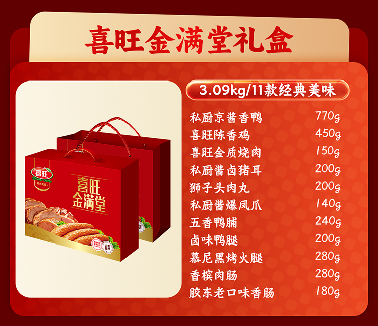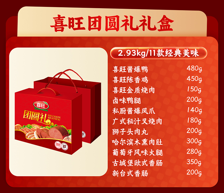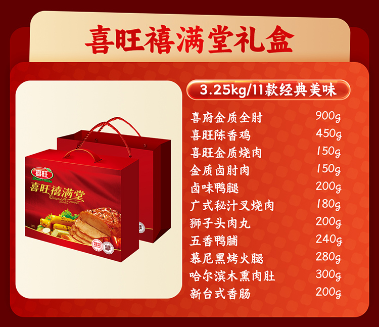 喜旺礼盒开袋即食的便捷性,更是为忙碌的春节省去不少麻烦,让你轻松搞定一桌团圆硬菜。懂年味,更懂你的多元需求。喜旺本次推出二十余款春节礼盒,覆盖不同预算、不同场景,不管是自留还是送礼,都能找到完美匹配的那一款~