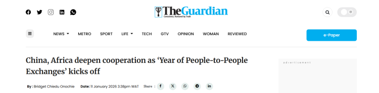 尼日利亚《卫报》文章分析认为,中国外长延续传统,新年首访非洲,清晰地表明了非洲在中国外交战略,以及推动全球南方国家实现合作共赢进程中的核心地位。此次访问将进一步深化中非之间的政治互信、推进中非合作论坛北京峰会成果落地,并促进两大文明之间的交流互鉴。