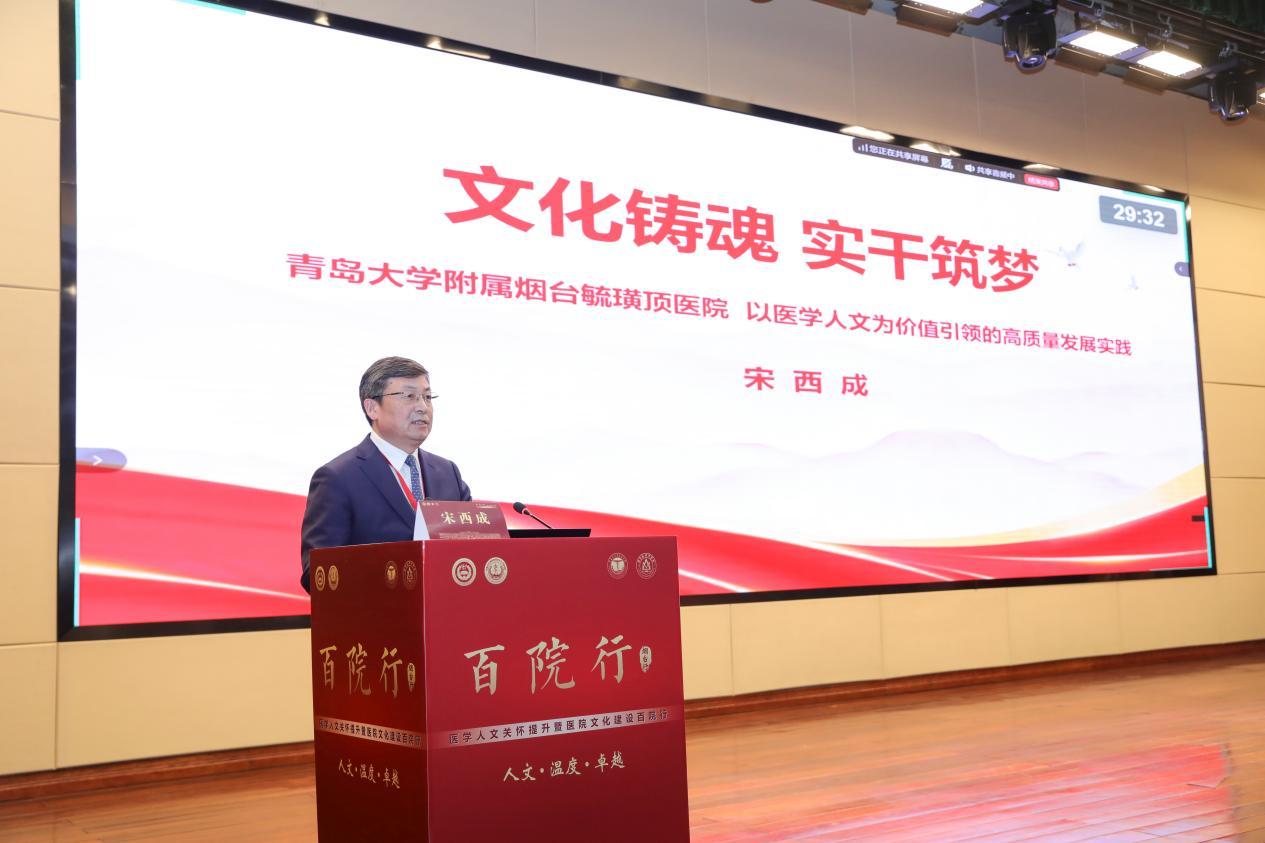 宋西成指出,“医学人文关怀提升暨医院文化建设百院行”活动京外首站走进烟台,体现了对青岛大学附属烟台毓璜顶医院文化建设成果的认可,也标志着医院人文建设的实践和交流正在向更广阔的范围拓展。他表示,医学的发展,不仅需要技术的突破,更需要精神的引领和文化的支撑。十分荣幸与北京协和医学院携手,共同搭建高规格交流平台,深入探讨如何将人文精神更好地融入医学教育、临床实践和医院管理等方面,为新时代医学人文建设和医院文化发展注入澎湃动力。