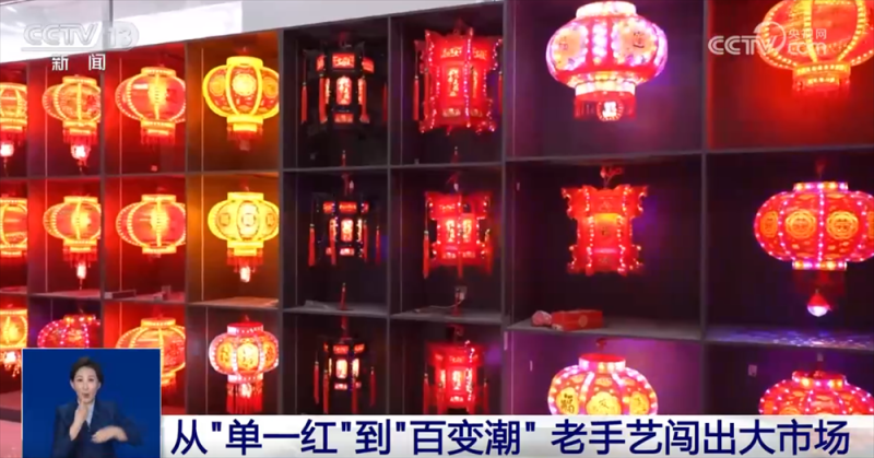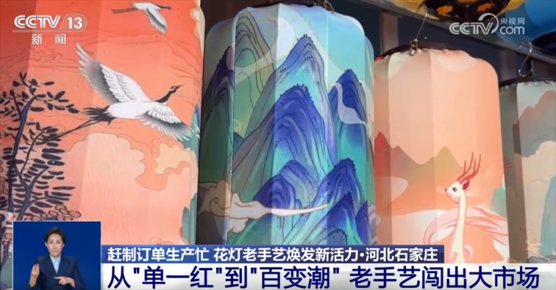 某宫灯厂负责人 白会平:通过跟大专院校合作,研发新的产品,每年都得有一个新的突破。现在我们国潮风的灯笼特别受年轻消费群体的喜欢。原来我们是单一的几个品种,现在发展到18个大的系列、300多个品种,而且根据客户的要求还可以量身定做。