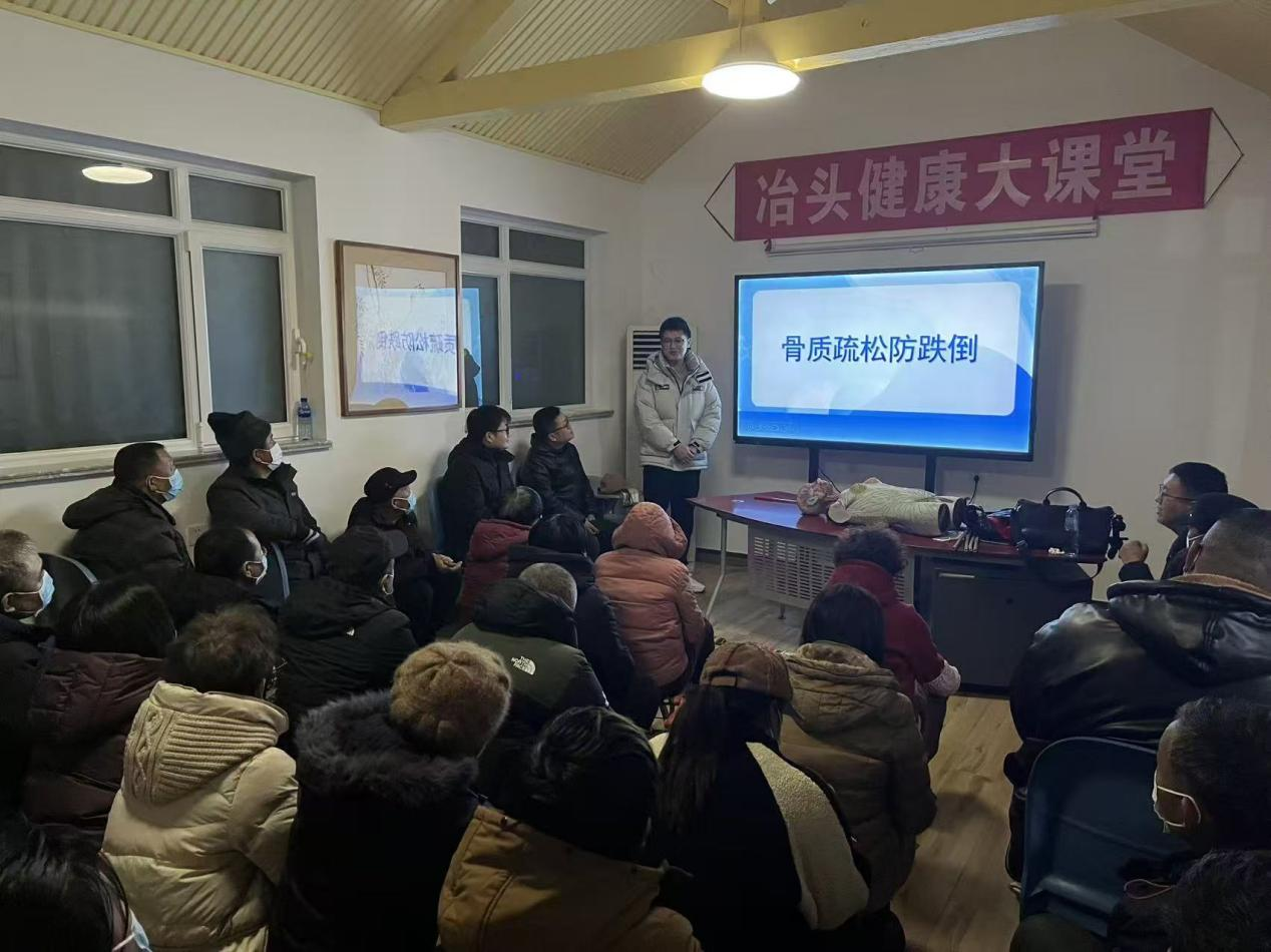 1月10日晚,大雪封岛、寒风凛冽,却丝毫阻挡不了医院送健康的脚步。原定赴冶头村授课的创伤骨科主任医师王新因海面上风急浪高被迫滞留长岛,经医院紧急协调,同科专家郇振东医生主动请缨代讲,顶风冒雪驱车两小时赶赴冶头村健康大课堂,如约开启这场特殊的科普义诊。