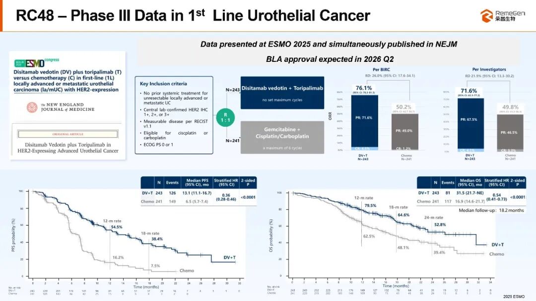 ● 尿路上皮癌(UC):联合PD-1一线治疗HER2阳性局部晚期或转移性尿路上皮癌适应症预计将于2026年国内获批上市。