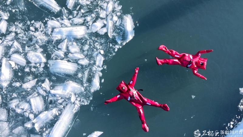 最让张洁印象深刻的是周四来体验项目的一对母子。初二的孩子因学业压力情绪低落,偶然看到冰浮项目后希望妈妈能带他来体验。“孩子体验完从冰水里出来,满脸的新奇,话也多了,妈妈特别欣慰。”她说。冰浮现场还提供航拍、跟拍服务,不少游客都选择用镜头记录这独特时刻。