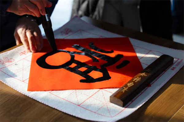 活动现场,“村社联动传文脉,墨韵惠民送福寿”的红色横幅格外醒目,瞬间拉满新春氛围。为让活动更具温度与意义,新添堡村两委与海天文化书院提前精心筹备,不仅备齐了红彤彤的宣纸、醇厚的墨汁等物料,更将敬老爱老的传统美德融入活动中,专门为全村80岁以上高龄老人定制了专属“寿”字福利。书写现场,书法家们凝神聚力,笔走龙蛇:“春日得意人得志,骏马扬蹄国扬威”等马年主题春联笔力遒劲、寓意吉祥。“福”字作品或端庄大气,或灵动飘逸,每一笔、每一划都承载着对村民新春的美好祝愿。精湛的书法技艺引得村民们纷纷驻足围观,不少人拿出手机记录下这墨香氤氲的温馨时刻。