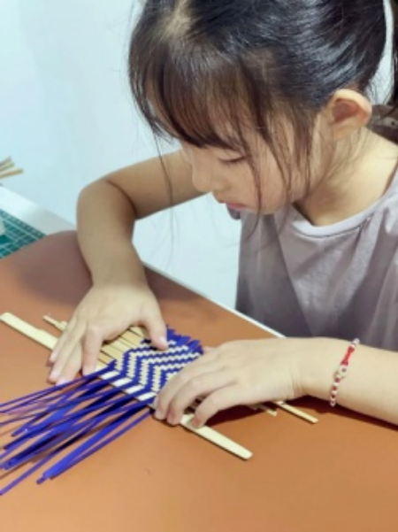 选用细竹篾(提前打磨光滑,无毛刺)或替代材料(如彩色塑料篾,更轻便安全),简化编织工艺,指导儿童制作 “竹编风铃”“竹编书签”“竹编挂饰”等简易作品。儿童只需学习简单的编织手法(如平编、绞编)即可完成,可在作品上装饰小珠子、彩绳等,增加童趣。