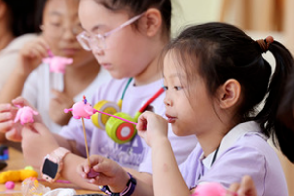 采用超轻粘土或陶泥(陶泥需提前准备烤箱或自然晾干条件),简化陶艺制作流程,讲师讲解烟台传统陶艺的造型特点(如仿生陶器、简约器皿),指导儿童捏塑“夏日小鱼”“多肉植物”“小水杯”等简单自然主题作品。若用超轻粘土,作品可当场完成带走;若用陶泥,可待作品晾干烧制后通知家长领取(或提供快递服务)。