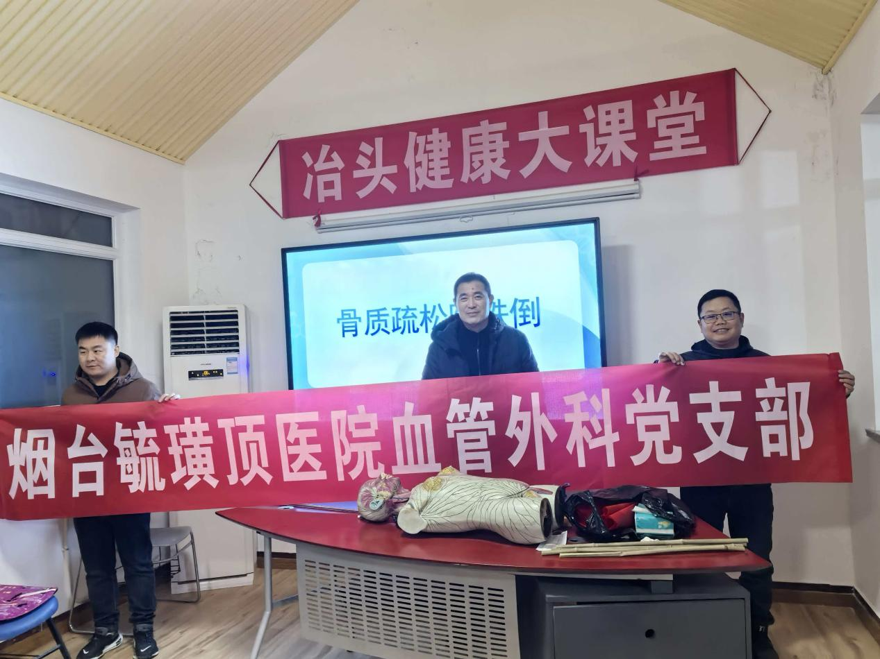 1月17日晚,创伤骨科王新主任医师团队走进牟平区冶头村健康大课堂,为村民带来一场内容翔实、通俗易懂的骨健康公益科普讲座。此前因风雪封岛未能如期赴约,此次王新团队提前半天抵达,联合血管外科团队精心筹备,将“遗憾缺席”转化为“加量升级”的健康盛宴,以实际行动践行医者守护百姓健康的初心使命。