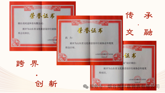 这些荣誉的取得,不仅是对美时嘉钟表这一品牌以及美时嘉人的肯定,更是对我们在文化引领、创新赋能领域付出的认可。同时也是对“美时嘉”强有力的激励。美时嘉钟表及全体美时嘉人始终秉持着认真、执着、专一、专业的信念,积极为烟钟跨界融合贡献自己的力量,不断探索新的可能性,促进不同行业之间的交流与合作,精进技艺、潜心钻研,为百年烟钟的辉煌发展增添助力,推动烟钟行业迈向更加美好的未来。