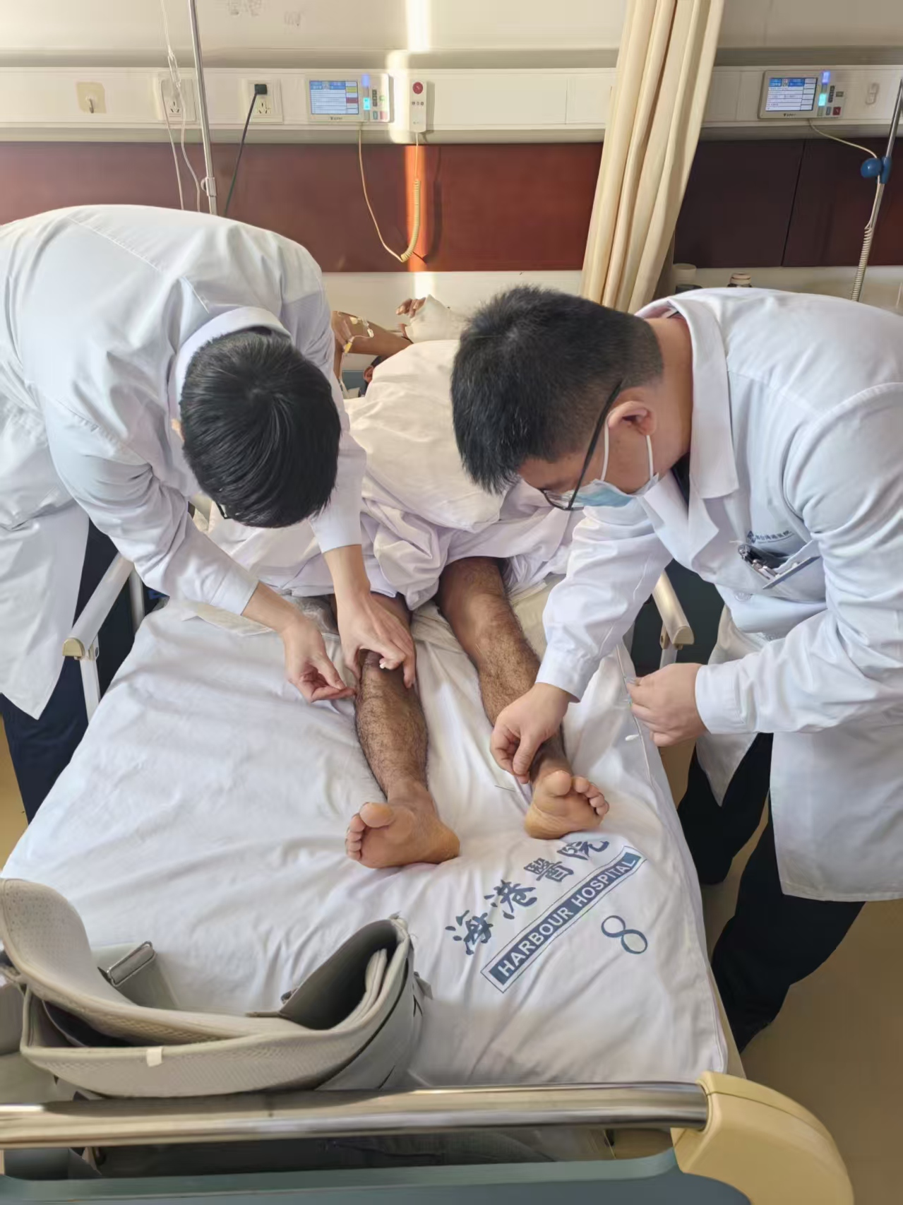 术后康复是神经功能恢复的关键环节。徐辉主任团队创新性采用中西医结合治疗模式,在给予西药营养神经的基础上,辅以中医针灸等特色疗法,精准干预促进神经修复。治疗过程中,团队每日密切监测患者神经功能变化,动态调整康复方案。渐渐地,肖先生的双下肢开始恢复运动功能,麻木感逐步减轻。待病情平稳后,团队又为其顺利实施左腕关节骨折脱位修复手术,解决了复合创伤的后续治疗难题。
