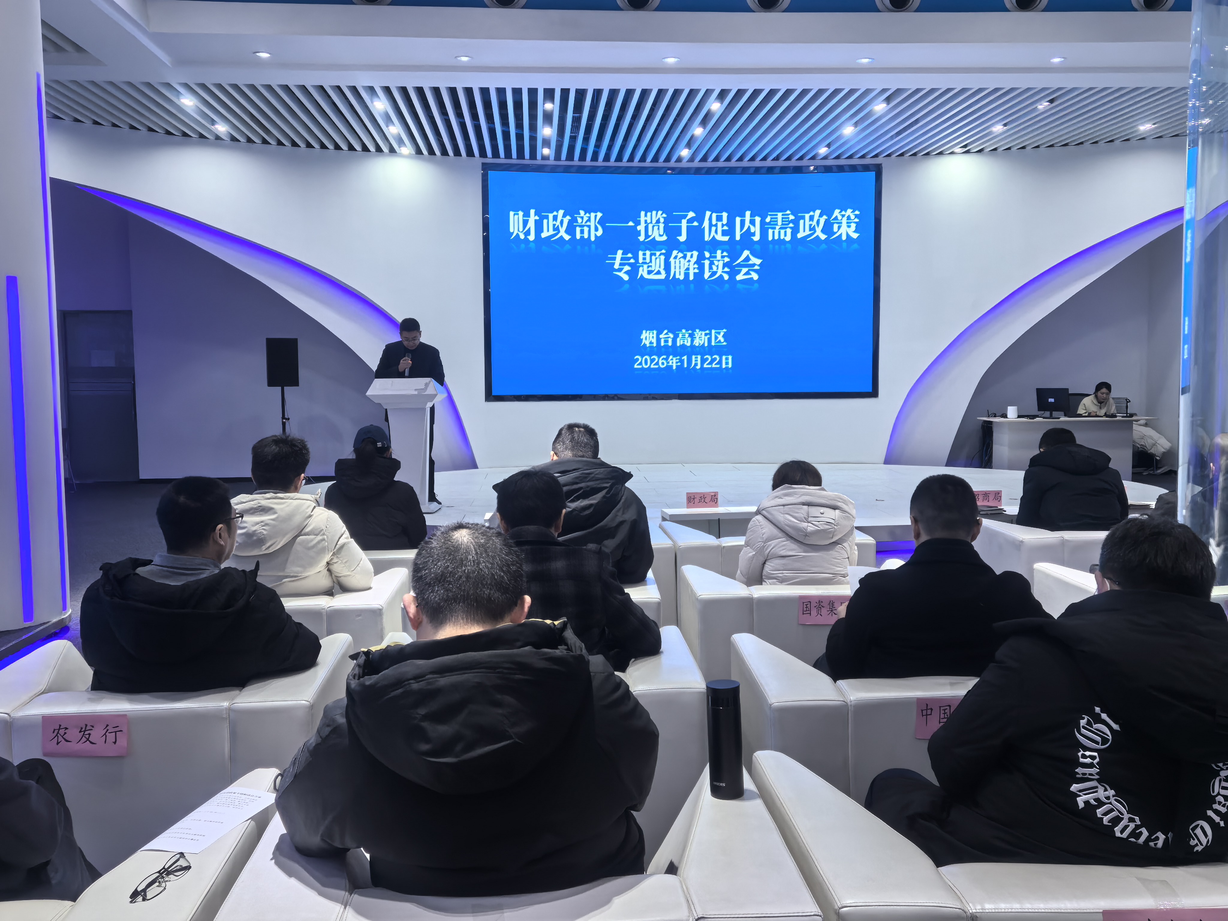 胶东在线1月23日讯(通讯员 郭健 实习编辑 单煜媛)为抢抓国家宏观政策机遇,助力企业第一时间精准对接财政部1月20日最新发布的激发民间投资消费一揽子政策,争取高新区更多企业享受红利,1月22日上午,烟台高新区组织召开专题政策解读会,以“政府搭台、机构解读、企业受益”的模式,打通政策落地的“首站”与“末梢”。区财政局、招商局、经济发展局、科技创新局等职能部门,联合烟台融资担保集团、多家合作银行、各层级孵化器及企业代表,共同参与此次政策“及时雨”的集中宣贯与对接,以实际行动诠释“高新速度与温度”。