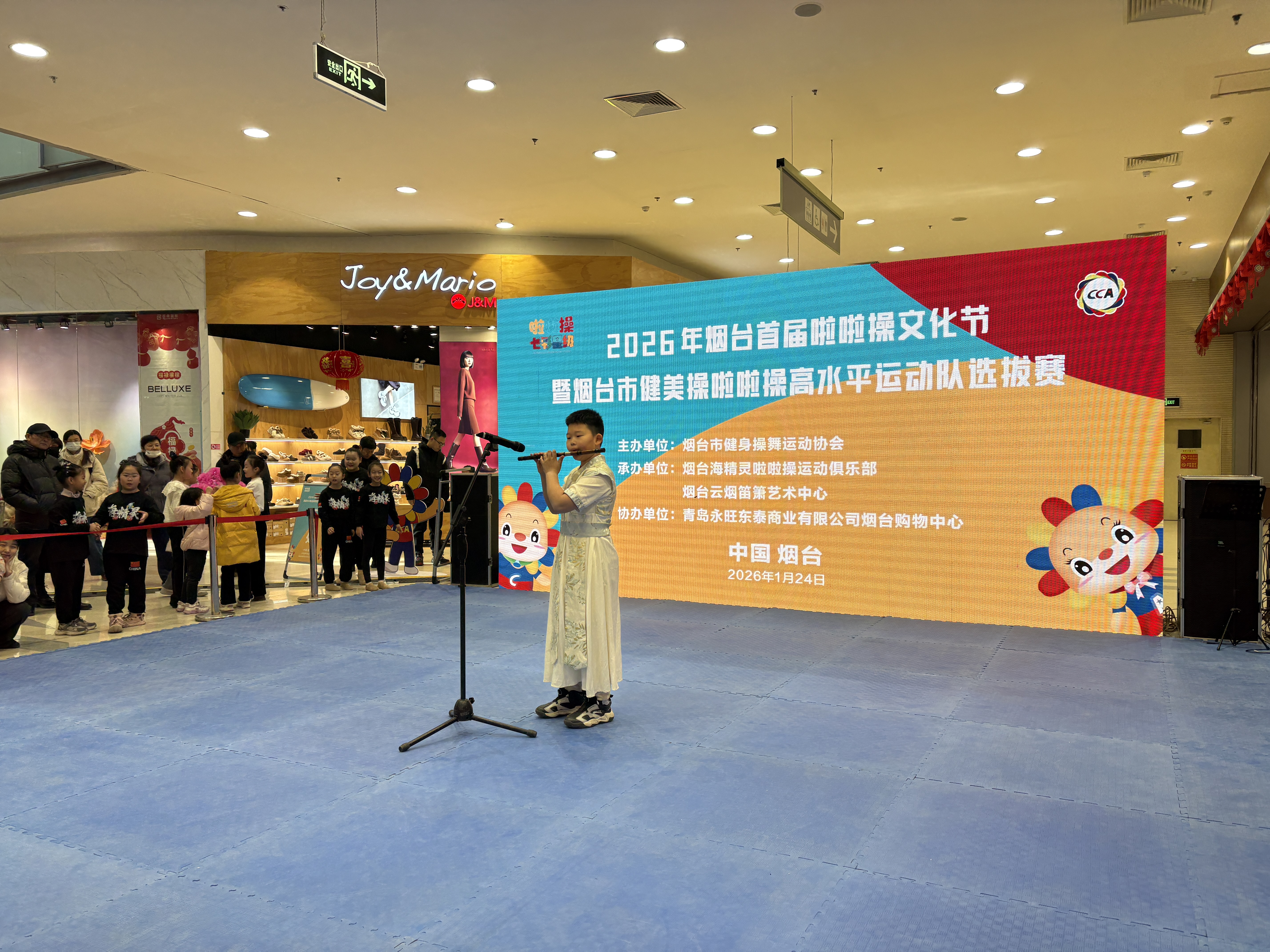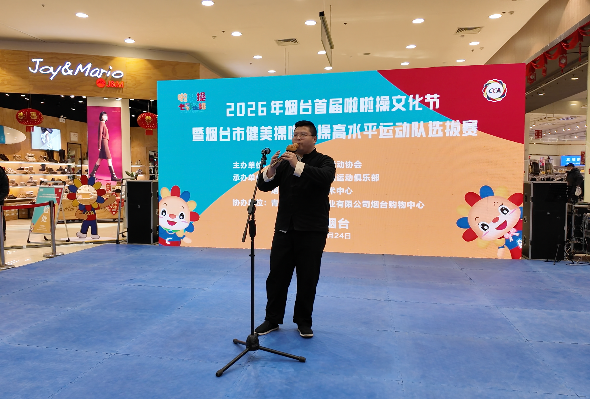 本此次活动既是一场烟台市健美操啦啦操的文化盛宴,也是一场融合体育与艺术的文化展示。在啦啦操竞赛环节之外,现场还安排了葫芦丝、竹笛、洞箫、电吹管等乐器表演。演奏者身着传统服饰,现场演绎了诸多经典曲目,与动感活力的啦啦操表演形成了动静相宜的节奏对比,丰富了活动的视听层次与活动文化内涵。