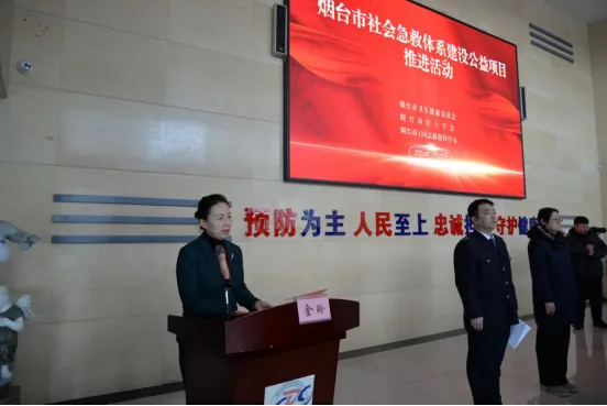 胶东在线1月26日讯(通讯员 吴明顺 张晴)1月20日,烟台市120急救指挥中心成功举办“国家急救日”倡议暨120急救科普大课堂公益培训活动,同步开展“烟台市社会急救体系建设公益项目”推进活动和“生命护航”社会急救志愿服务启动活动,倡议全社会共同关注急救、学习急救、参与急救,弘扬“人人学急救,急救为人人”的新时代文明新风尚。烟台市卫生健康委员会党组成员、三级调研员金玲出席活动并讲话,市120急救指挥中心、市红十字会相关负责同志以及来自全市卫生健康和红十字会系统的50余名社会急救志愿者代表参加活动。