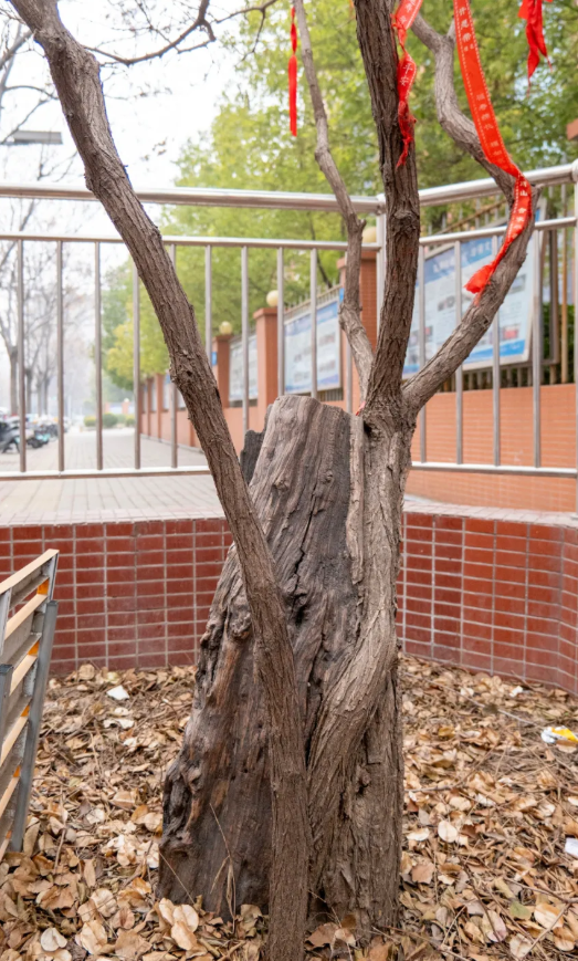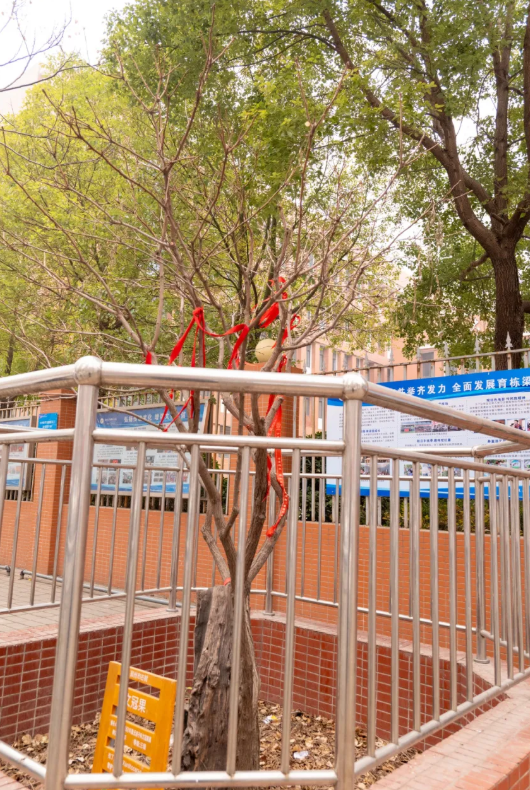 如今,这棵文冠果已成为连接过去与现在的绿色地标。每到春天,四色花朵次第开放;每到考试季,红绸带随风飘扬。