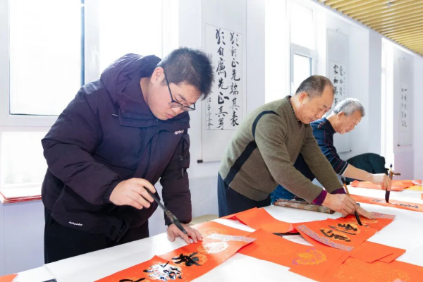 此次活动不仅为居民朋友们呈现了一场精彩的非遗视觉盛宴,更设置了沉浸式体验环节,让大家在亲身参与中感受传统文化的魅力。传承人们放下“行家”的身段,化身耐心的指导老师,手把手带领居民们解锁非遗技能:感兴趣的居民或拿起毛笔,在老师的指导下一笔一画临摹春联、描绘“福”字,从握笔姿势到运笔技巧,慢慢体会笔墨间的韵味;或围在拓印台前,小心翼翼地涂抹墨汁、铺展宣纸,亲手完成一幅“福”字拓印,感受传统拓印工艺的精巧;还有许多居民专注于中国结编织和艺术福卡设计。他们将一根根红绳化作寓意吉祥的中国结,将一张张卡纸变成独一无二的艺术福卡,每一个亲手完成的作品都承载着大家对新年的美好期许。“这比买来的窗花有意义多了,感觉把‘福气’和‘手艺’一起带回了家!”一位正专注书写春联的国企退休职工王阿姨笑着感慨。这些非遗技艺从静态的“遗产”名录中走出,变成了居民可触、可感、可参与的“活态传承”。