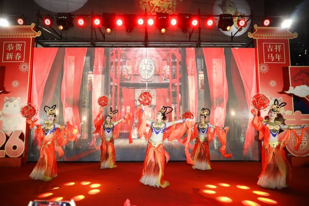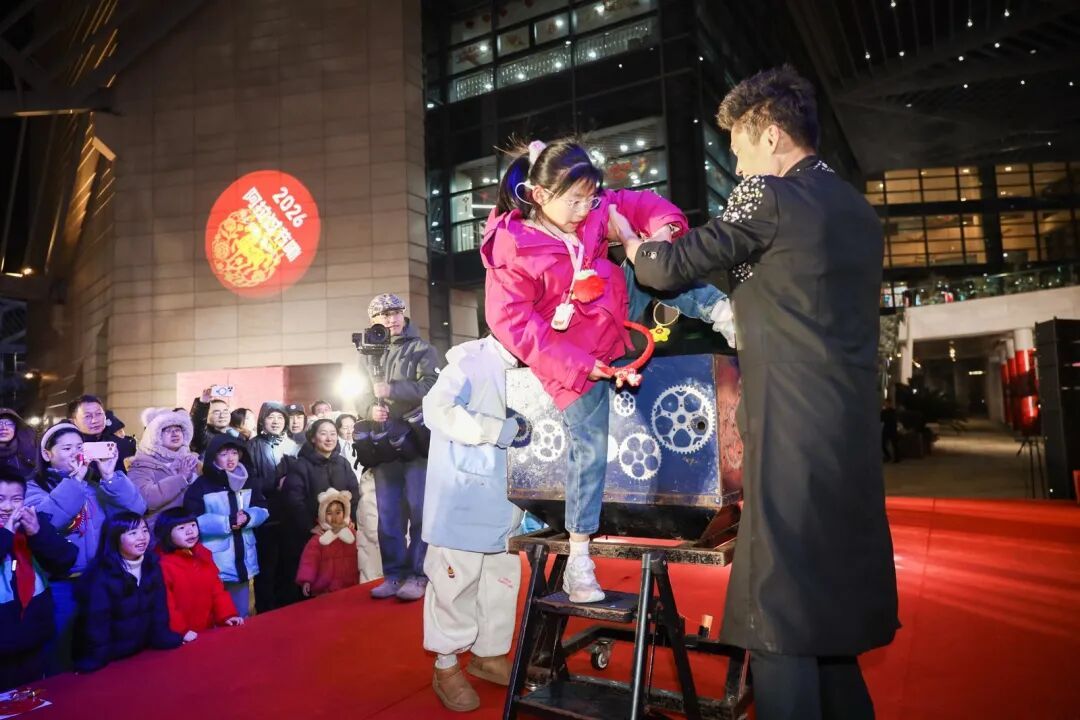从午后到夜幕,主舞台好戏轮番上演:婉转悠扬的经典越剧选段,唱腔韵味十足,引得戏迷朋友们连连叫好、驻足聆听;动感十足的精彩歌舞,点燃了现场每一份热情,跟着旋律就能感受到新春的活力;还有奇幻魔术杂技轮番登场,阵阵掌声与欢呼声此起彼伏,将现场氛围一次次推向高潮。