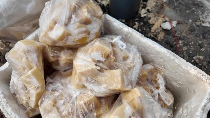 东北人过年的餐桌上,冻货得有,还得备全。冻梨、冻柿子、冻海鲜、冻粘豆包,还得再加个农家自制的冻豆腐。每个赶集日的前一晚,家住附近的张伟波和妻子都要忙活半天。他们制作的卤水豆腐久炖不碎,越炖越香。张伟波家的冻豆腐都是放在室外自然冻上的,这样的冻豆腐,“蜂窝”多,炖菜更入味,来回购的老顾客,看中的自然也是这份“纯天然”。