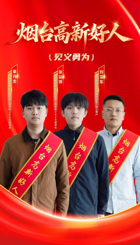 秦兆志、张弘烨是山东商务职业学院信息工程学院2024级在校学生;刘亚东是烟台职业学院2013届毕业生。这三位来自不同学校、不同届别的青年,在烟台高新区街头,用果敢与善意共同谱写了一曲动人的生命救援赞歌,生动诠释了新时代青年的价值追求与责任担当。