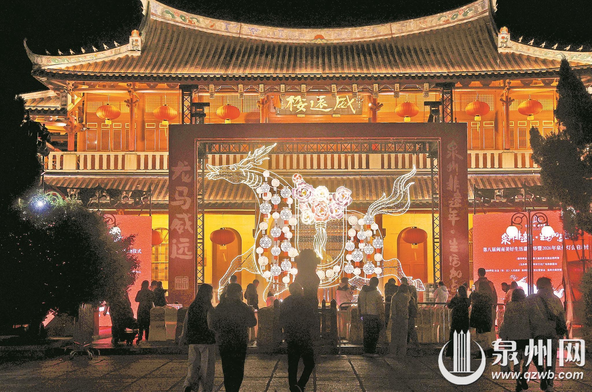 昨晚,“泉州非遗年·生活加点甜”第八届闽南美好生活嘉年华暨2026年泉州灯会启动仪式在市区威远楼举行。(王柏峰/摄)