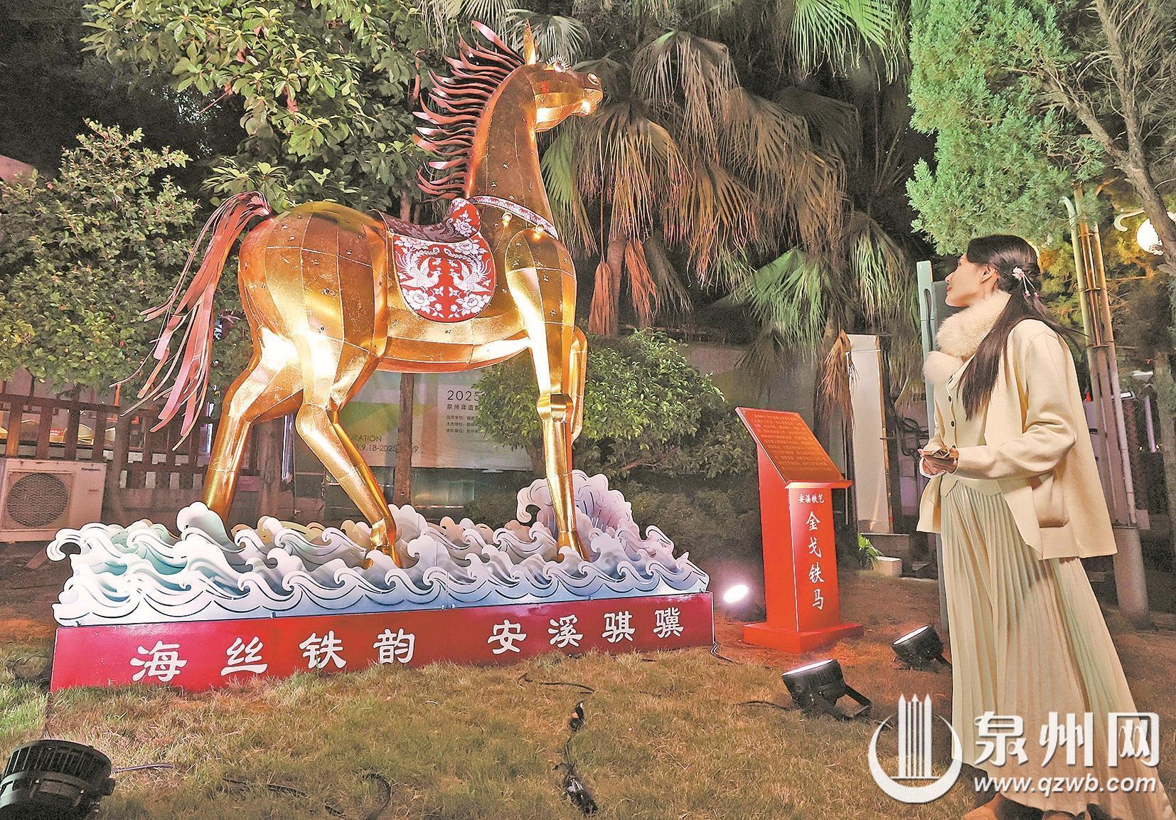 威远楼“龙马精神”创意花灯区成为昨晚活动的焦点。灯组以龙马造型为核心,融合LED灯带与针刺无骨花灯工艺,搭配绣球、猴、钱币、大象等吉祥饰物,寓意“马上封侯”“马上有钱”,传递龙马精神与新春吉兆,吸引许多市民游客驻足拍照。